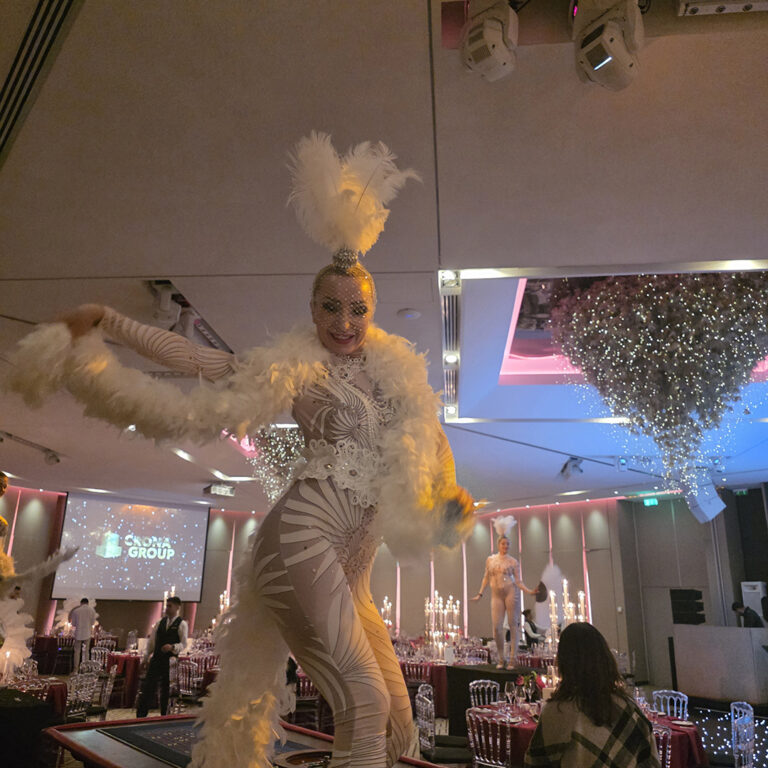 To set the tone from the very first moment, we introduced Gatsby-style dancers who brought elegance, rhythm, and a touch of vintage glamour to the evening. Their dynamic performances created an amazing atmosphere, energising the room and perfectly complementing the luxurious setting of the venue.